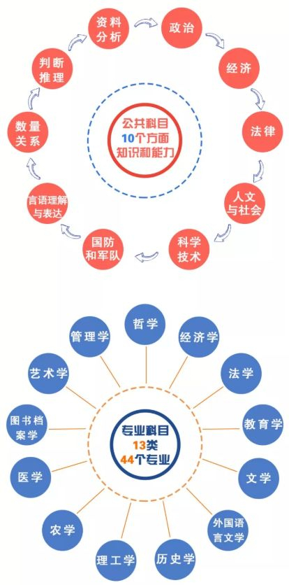 全军统一考试内容包括公共科目和专业科目,主要考核报考人员的综合素质和专业基础。报考专业技术岗位的,安排公共科目和1门相应专业科目进行笔试。