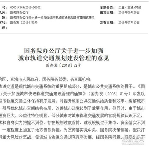 [文/观察者网 徐乾昂]今天(13日),备受瞩目的《国务院办公厅关于进一步加强城市轨道交通规划建设管理的意见 国办发[2018]52号》(以下简称52号文)正式对外印发。相比15年前的81号文,新版意见对申报地铁城市的人口、公共预算收入、政府债务等12道“门槛”进行了提高。其中最引人关注的,要数地区生产总值GDP的指标要求从原有的1000亿元变成了3000亿元,翻了三倍。