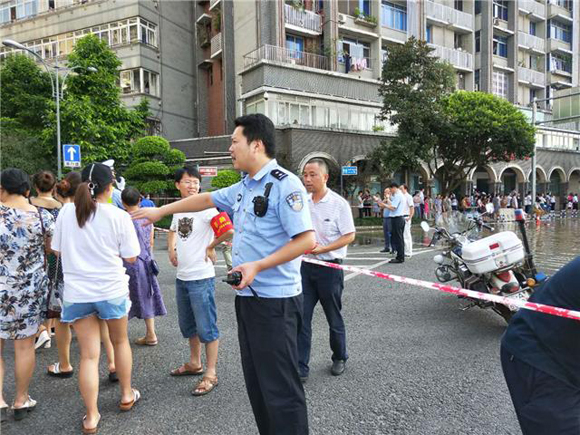 7月13日下午,公安民警在现场指挥交通并疏散群众。通讯员 方霞 摄