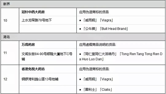 1、信泰中西药房(铜锣湾景隆街6号地下A铺)