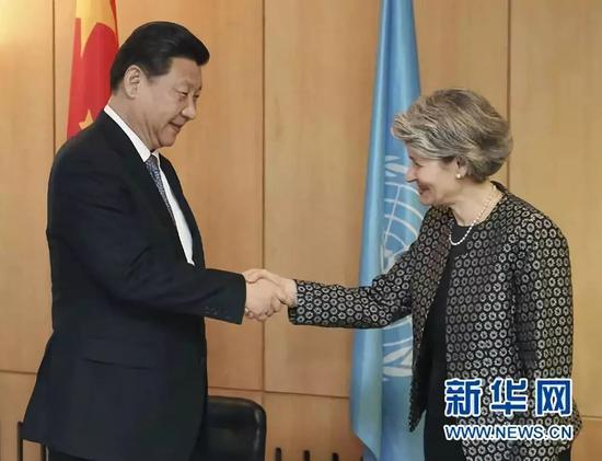 2014年3月27日,习近平访问联合国教科文组织巴黎总部,这是他就任国家主席之后访问的第一个联合国机构。在总部,习近平会见了时任总干事博科娃。