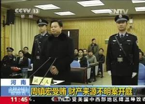 2014年2月底,河南信阳市中院对周镇宏作出一审判决,认定周镇宏犯受贿罪和巨额财产来源不明罪,两罪并罚执行死刑,缓期2年执行,剥夺政治权利终身,并处没收个人全部财产。
