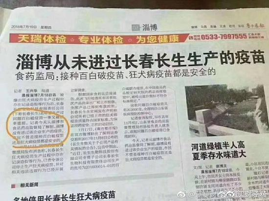 刊发“淄博无问题疫苗”的报纸道歉 总编辑被问责
