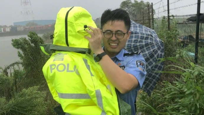 台风“安比”过境上海,记者最前线所见“魔都结界”这样缔造:民警脱下雨衣裹住孩子