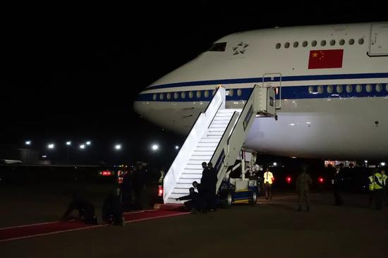 7月22日晚8点50分许,习主席的专机抵达卢旺达首都基加利国际机场。