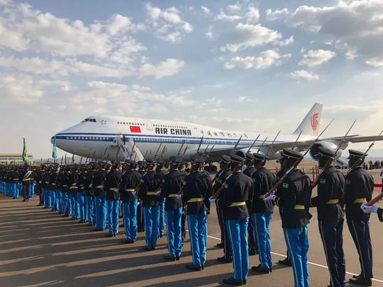△习主席专机即将起飞,下一站前往南非。(央视记者马亚阳拍摄)