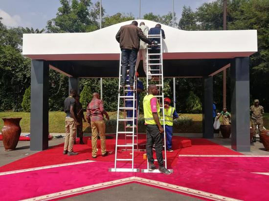 7月23日上午,卡加梅总统在总统府前广场为习主席举行了盛大的欢迎仪式。
