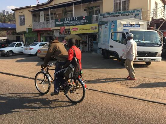 在基加利街头,还能看到这里的一大特色——自行车“的士”。起步价约100卢郎(人民币0.78元)。不过,这个行业正逐步被“摩的”取代。