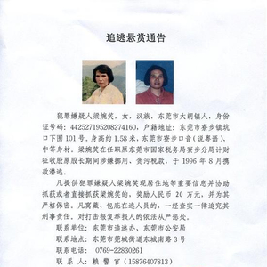 这名女逃犯潜逃20年 东莞监委悬赏20万捉拿