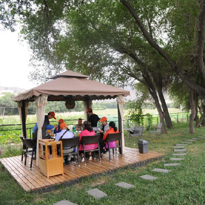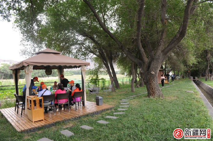 7月25日,在水磨沟区石人子沟村壹农园玫瑰花基地农家乐,升级改造后的休闲区干净整洁。(记者陈岩摄)