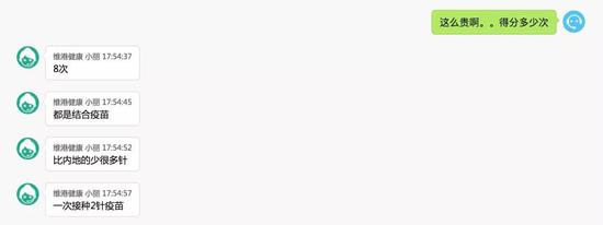 “全套19870港币。”26日,一家专门帮内地游客预约赴香港注射疫苗的中介向《环球时报》记者报出新生儿全套疫苗的价格:“一共8次,每次2针,两岁就打完上学前所有要打的疫苗。”报完价后,该中介又补上一句:“最近很多客人都来香港接种,这边疫苗很可能会断货,您要是提前付费,会帮您留住疫苗。”