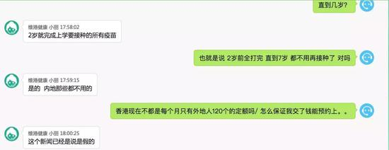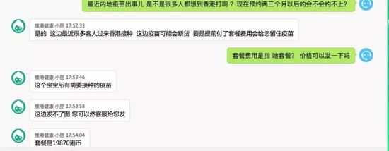 《环球时报》记者发现,网上的一些赴港打疫苗中介唯一的服务内容便是“预约”,而对于记者提出的关于风险的询问,对方则从不正面回答:“如果出了问题请直接找诊所,我们只负责帮您预约。”在被问到19870港币的套餐中,是否还包括其他服务时,该中介只说“可以免费改期”。