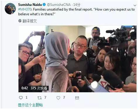 在另一条推文中,可以看到一位家属在接受媒体采访,她说:“你们怎么可以希望我去相信那里面(报告)的内容?这里面没有结论,也没有答案。” Sumisha Naidu也说:“家属们并不满意这份最终的报告。”