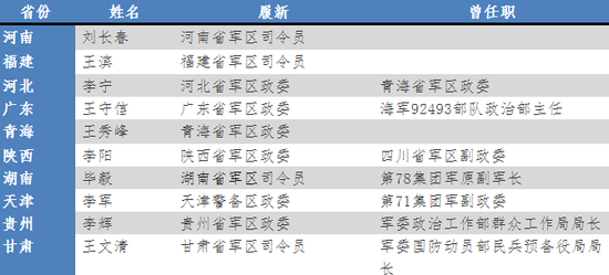 原标题:今年履新的10位省军区主官,来自这几个地方