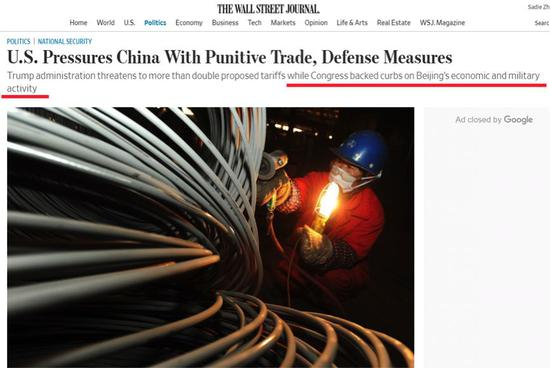 其次,是美国《华尔街日报》对于美国国会刚刚通过的2019年“国防预算法案”的报道。