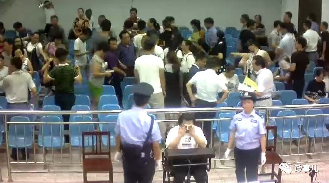 法官宣布该案将择期宣判休庭后,法警向张艺递了纸巾。