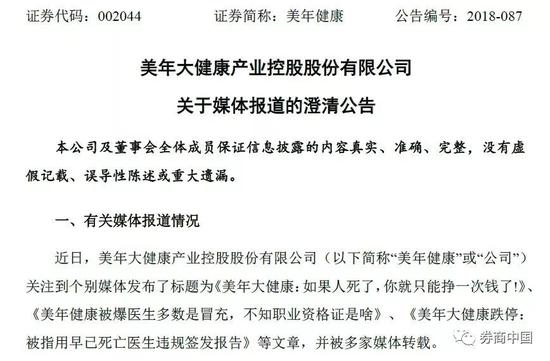7月30日晚间,美年健康再度发布澄清公告。