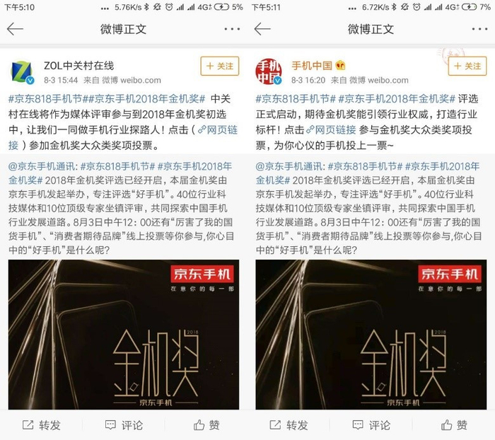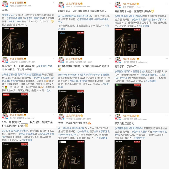 京东818手机节金机奖开启投票 vivo、荣耀等大厂为京东刷屏!