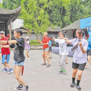 在活动现场,学子们还体验了茶艺表演、太极拳表演,亲身领略了中国传统文化的趣味。“Very interesting!”来自哈佛大学的Addie告诉记者,这次到新津来,在参加赛艇比赛之余还划了龙舟,“中国文化既传统又现代,绿道也非常漂亮,生态环境非常吸引人,下次有机会还来!”