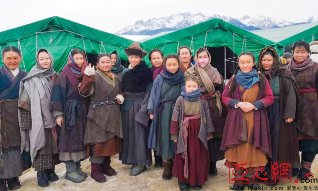 沙湾县当地村民,不论男女老少在《九州缥缈录》剧中当群众演员。图为村民在剧组拍照留念.