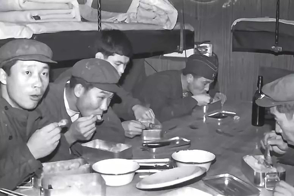 随军医生林有来会监督食堂工作。肉类等冷冻时间长,有一种闻到就想吐的怪味。新鲜蔬菜、肉鱼虾等冷冻食品和大米吃完后,开始吃罐头和压缩饼干。长时间见不到新鲜蔬菜,一小块已经变糠的水萝卜也好吃得不行。