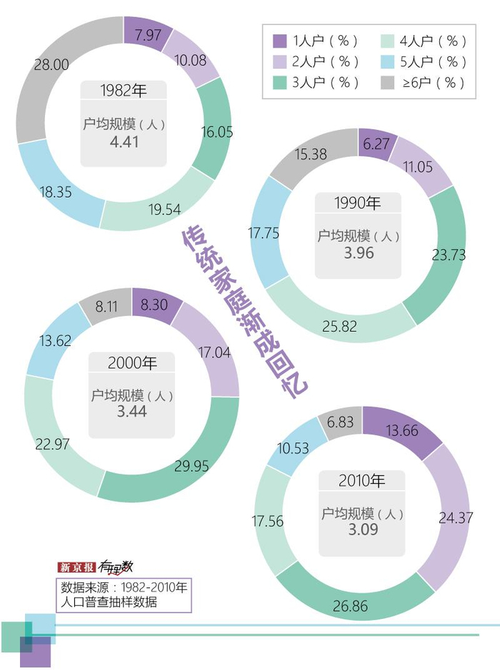 从情感的角度来看,几代同堂的传统大家庭比例越来越少,由一对夫妇及未婚子女组成的核心家庭占比越来越多,传统家族式的婚约约束力在不断缩小,离婚的情感成本在不断降低。以前离个婚,可能要过五关斩六将,现在多数情况下,只需对婚姻双方和孩子负责。而事实上,结合如今生育率不断下降的现实来看,一言不合就离婚的障碍也越来越少了。