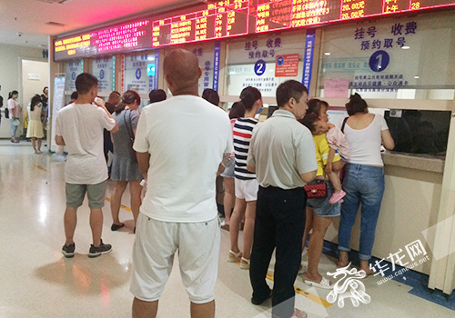 8月16日上午11点21分,在重医儿童医院本部二楼只有少量家长选择在现场预约挂号。杨凌梅 摄