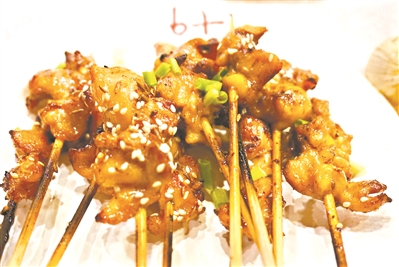 一年前,黄耀辉选中了如今的场地,与一家老字号酒家合作,顾客们下单后可以在干净明亮的大厅里聊天等候,免去了以往蹲坐街边的诸多不便,烧烤则在厨房里。每当晚上回到店里,总有食客邀他喝上一杯啤酒叙旧,忙碌一天的他总会笑脸相迎。