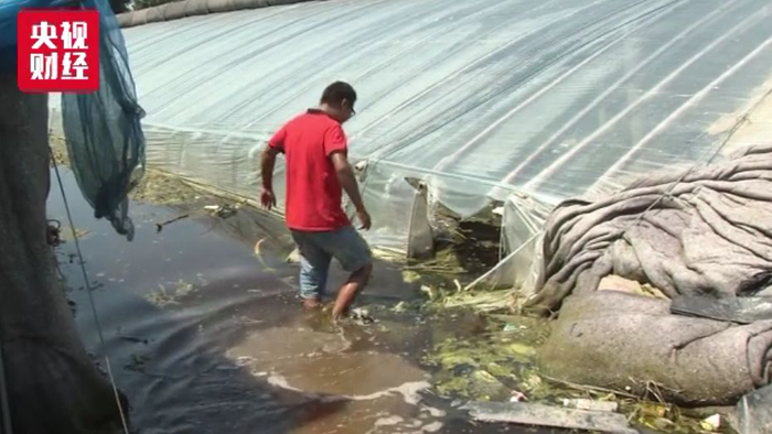 这场大水,让孟令军家的5个大棚全部被淹。这几个进了水的大棚,正在通过水泵把水往外抽;而另外一个去年新建的大棚,被浸泡后已经坍塌,只能拆掉再重建。