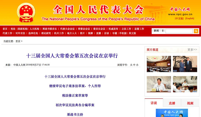 十三届全国人大常委会第五次会议8月27日下午在北京人民大会堂举行。栗战书委员长主持会议。备受社会关注的民法典各分编(草案)提请本次会议审议。