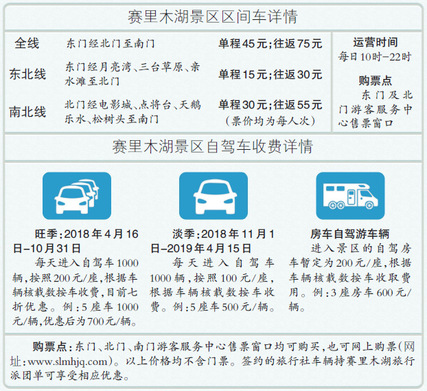 都市消费晨报讯(文/记者安心制图/杨波)近日,记者从赛里木湖景区管委会获悉,赛里木湖景区区间车将于8月28日正式运营,同时,允许自驾车、旅游大巴车限量购票驶入。