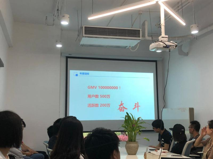 不过,在他办公室墙壁上悬挂着的一张“GMV(成交总额) 100000000,干!干!干!”的任务分解图,却间接说明了他的壮志雄心。