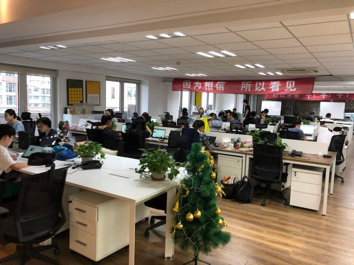不能怪他们多疑。办公室墙壁上悬挂的“橙载未来,干干干”“因为相信,所以看见”横幅,分销的营销模式……淘淘课具备了太多“传销”特征。