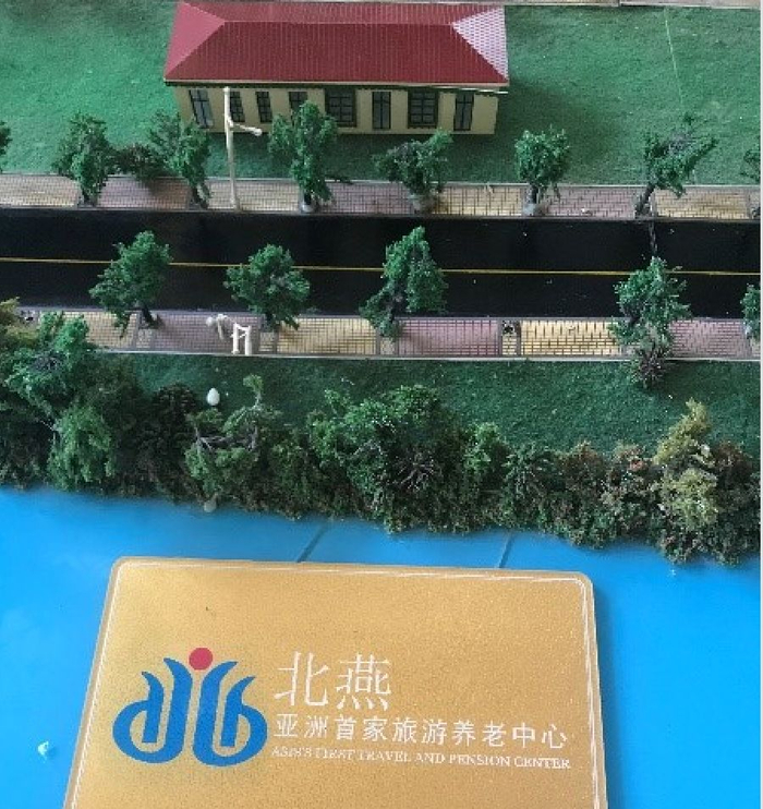 图为李艳滨名下燕达宾馆一层大厅展示的“北燕旅游养老中心”模型