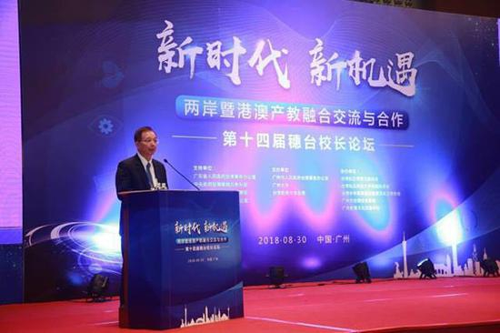 在粤港澳大湾区发展战略的大背景下,本届穗台校长论坛首次邀请到香港、澳门的大学校长参会。论坛以“新时代新机遇——两岸暨港澳产教融合交流与合作”为主题,共同研讨“产教融合”等发展议题。