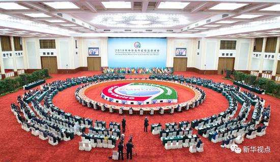 上午10点,习主席同论坛共同主席国南非总统拉马福萨及其他53个论坛非洲成员代表团团长一起步入会场,围绕着一个“超级圆形桌”坐了下来。