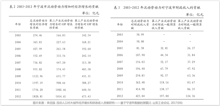 14。李庄园。 流动人口对大城市经济增长和财政收入贡献研究——基于宁波市数据的测算[J]。 山东工会论坛, 2017(06)