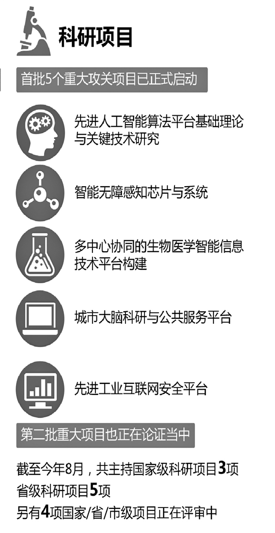 除了积极谋划自主重大科研项目,之江实验室还积极参与国家及地方科研项目和计划,拟建重大科学装置,建设一批高能级研究试验测试平台。截至2018年8月,之江实验室共主持国家级科研项目3项,省级科研项目5项,另有4项国家/省/市级项目正在评审中。