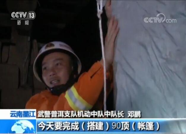 武警普洱支队机动中队中队长 邓鹏:今天要完成(搭建)90顶(帐篷),大概要到凌晨4、5点。
