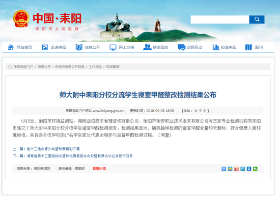 湖师大附中耒阳分校:分流学生寝室甲醛含量未超标