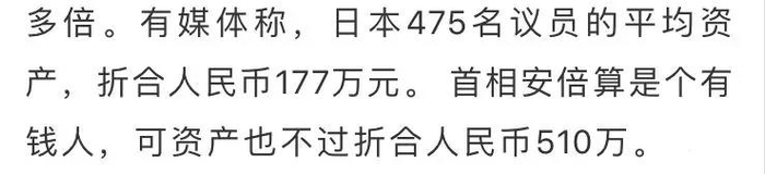 又如该文称,“日本475名议员的平均资产,折合人民币177万元”,“还有35个议员是零资产,穷得叮当响”,同样犯了知识性错误。