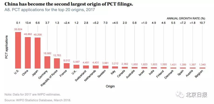 北京日报记者查询了世界知识产权组织官网发布的2018年度报告,报告中显示: