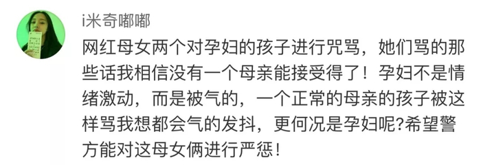 17楼一位住户说认识杨女士,“事发那天晚上,我看到婷婷(杨女士)坐在地上,挺个大肚子,整个人在大口喘气,脸色挺难看的。网红和她妈一边走一边骂很难听的话,‘你的孩子就该流产,不应该生下来’之类的。”