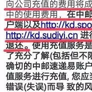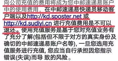 前不久,唐先生不再从事此工作,想取出账户剩余的57.65元,发现无法提现。他向在线客服询问后,得到“公司知道这笔钱是用户个人的,但是公司规定就是不能提现”的回复,而且客服还表示“速递易服务协议中明确提到充值费用不可以退还”。唐先生困惑的是,既然公司说这笔钱是个人,为什么就不能取出来呢?