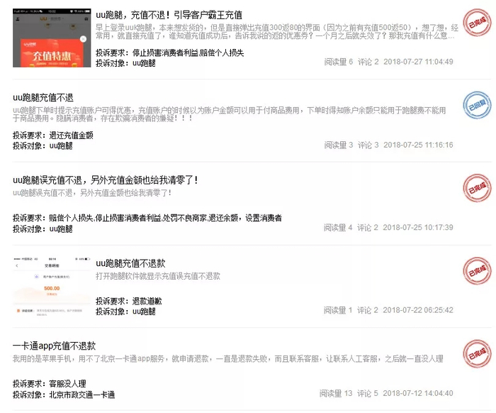 经过优化,摩拜用户目前可通过APP操作或拨打人工客服退款。虽然摩拜经过舆论监督做出整改,但还有众多APP存在充值不退情况。“聚投诉”网站上就有不少用户投诉uu跑腿、易到等APP充值不退款。