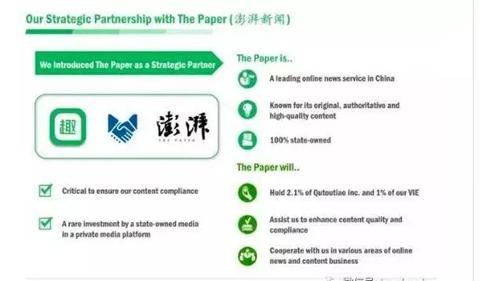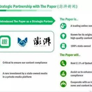 趣头条在首次递交的招股书中称,考虑向国有公司派发具有特殊权利的股份,以促进《互联网新闻服务许可证》的取得。今年8月,人民网旗下基金、澎湃新闻都成为趣头条的战略投资者,这成为趣头条向国有资本靠拢的信号。