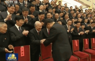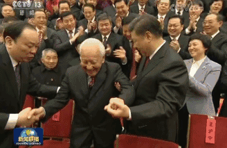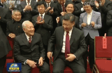习近平握住黄旭华的手,请他坐到自己身旁。