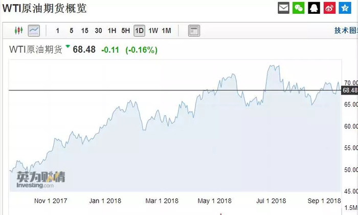 WTI原油期货近1年走势