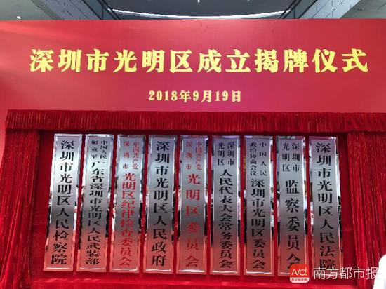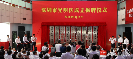 原标题:南方都市报:快讯!深圳光明新区“转正”升级光明区,今天下午正式揭牌