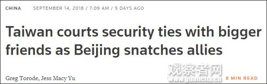 原标题:外媒:台当局或与他国共享大陆情报